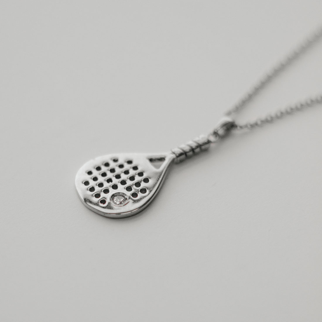 Colar raquete prateada com zircónia